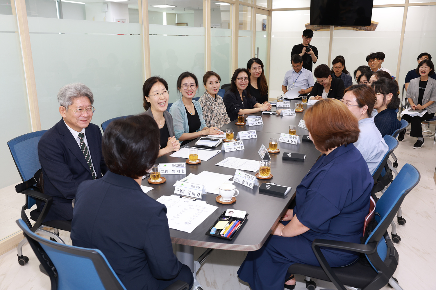 ❍ 장 소: 은평구청 본관 6층 구청장 접견실 ❍ 참 석: 대성고, 학교운영위원회, 학부모회 ❍ 내 용: 대성고등학교 현안 및 요청사안 논의 - 학교 통학로 안전 확보 - 학교 앞 경사로 열선 설치 - 교문 자동화 등
