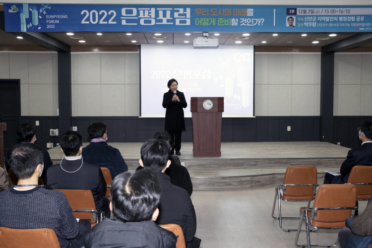 -주제: 우리 도시의 미래를 어떻게 준비할 것인가? -발표자: 박우량 신안군수 -내용: “우리 도시의 미래를 어떻게 준비할 것인가?”의 주제로 행정사례 공유 및 특강을 통하여 직원과 유관계자들의 공감대 형성을 위해 2022 은평포럼을 개최하고자 함.